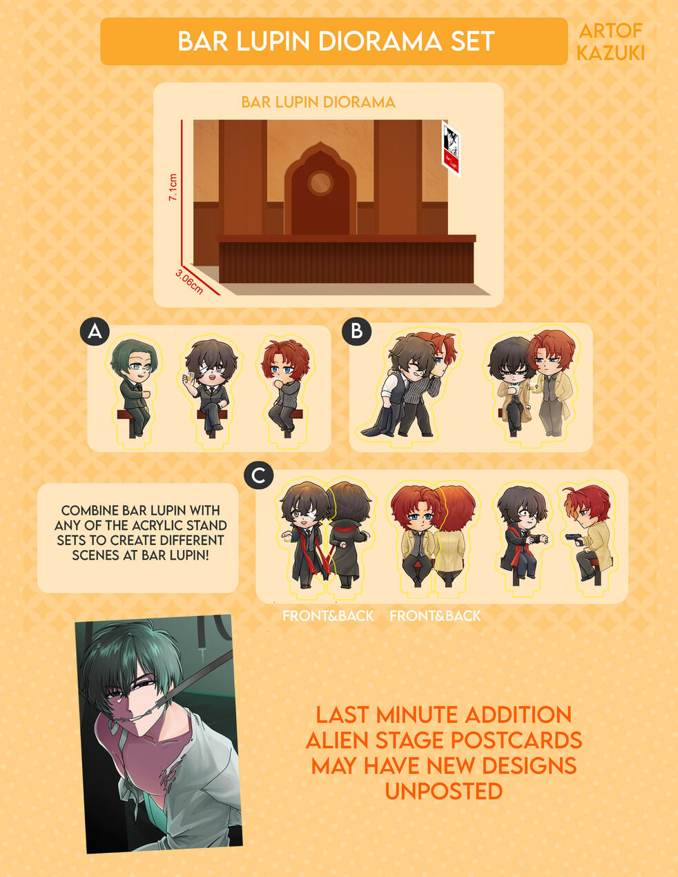 Some merchandise may be sold out/discontinued after this date and there may be new merchandise released after this date.This catalogue does not include items already sold out prior to 2024 or done in collaboration with other artists including stamp rallies, cupsleeves etc.